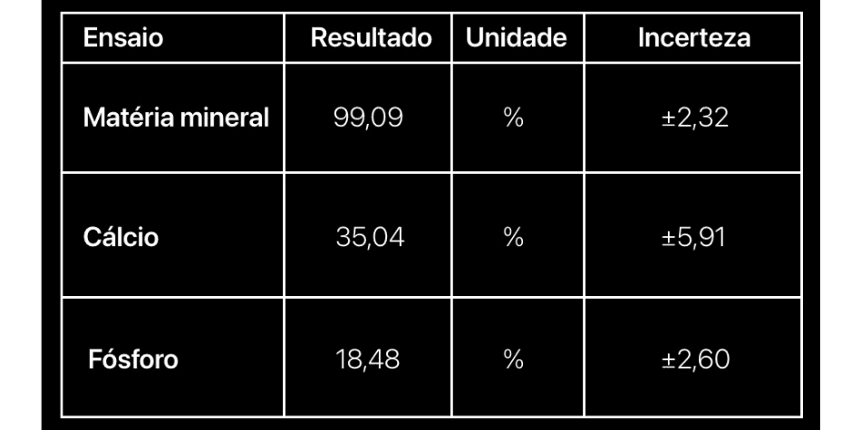 Há 16 anos no mercado, produzimos farinha de ossos calcinados com alto padrão técnico, fornecendo matéria prima de confiança para a indústria de nutrição animal em todo o Brasil.